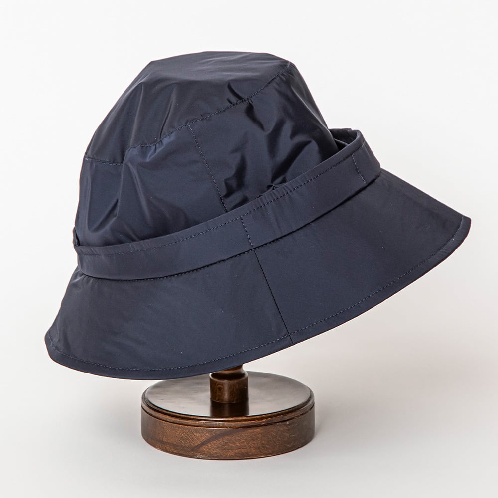 「ベルヌーイの定理」を用いており、風が抜けることによりツバの上下で気圧差が生じ気圧がツバの下側に押され、飛ばされにくい構造となっています。